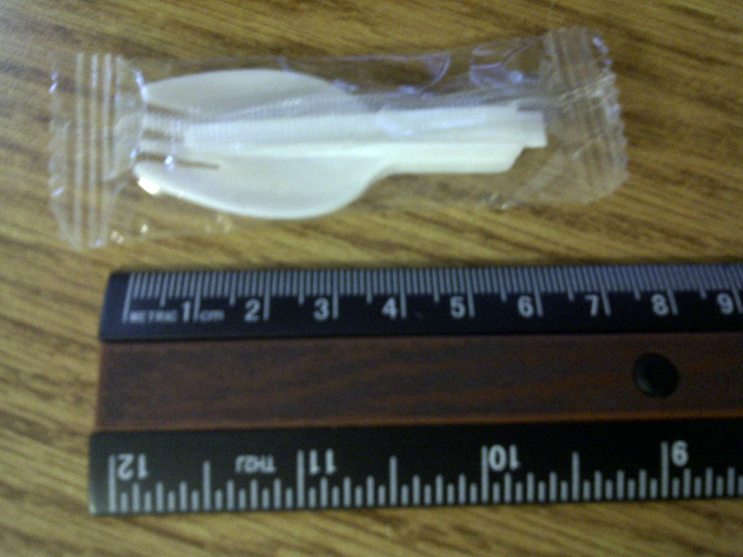 So, why would someone design something like this? It would seem that the idea was to both save space and to be convenient, which is probably why a person would try to combine their utensils. Here is a picture of the spork with a ruler to give an idea of it’s size: