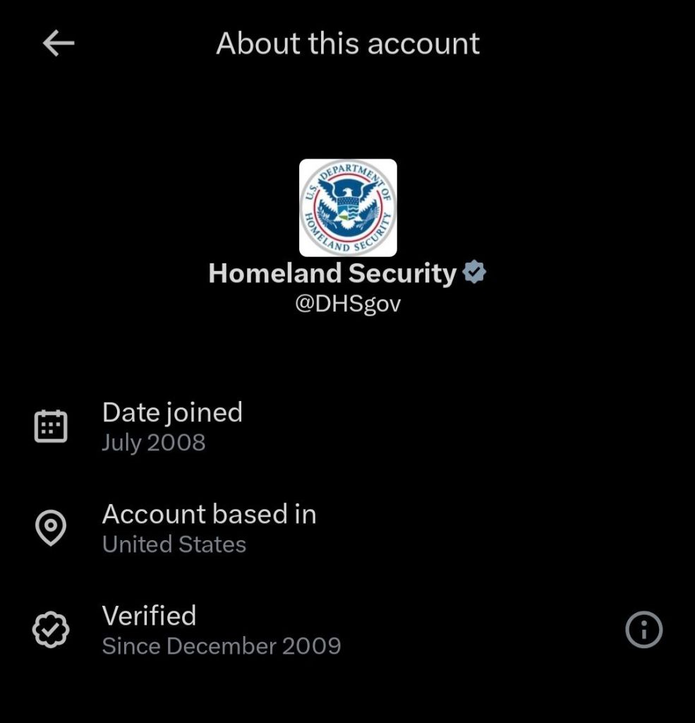 EDIT: There is a fake screen going around showing the US DHS as being run from Israel. But here is what you find if you check the DHS account on X: