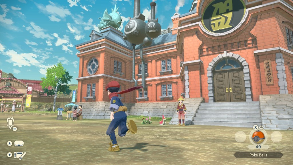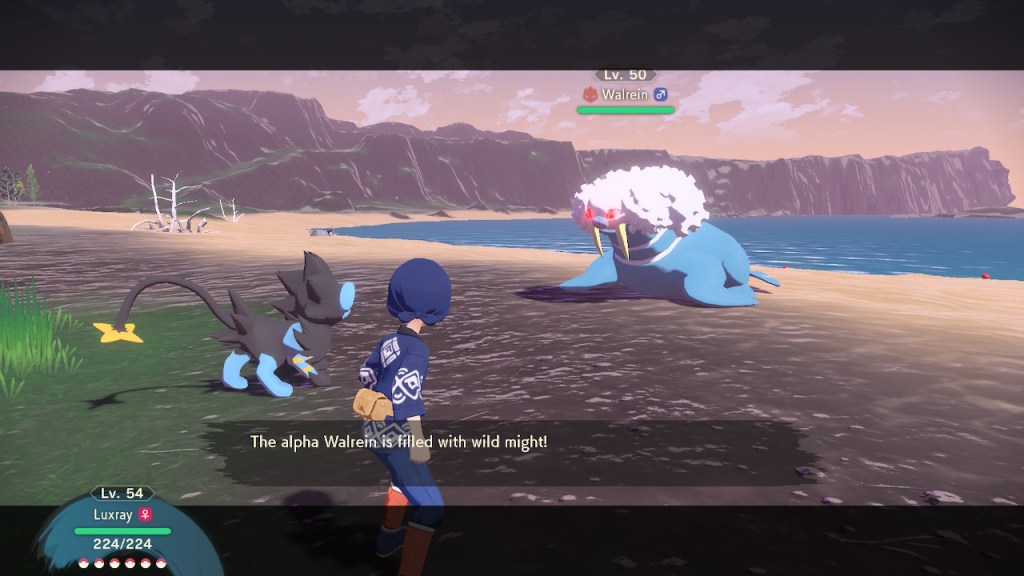 The soundtrack, by the way, is the best in the series. No question. Whether it’s the upbeat gym leader tune which is almost as good as the gym leader tune in Sword/Shield, the atmospheric environmental tunes that switches to an alternate track when mounting the ride Pokémon, the recurring leitmotif, and the bangin’ battle themes that play during a few key battles, it’s various degrees of excellent. Toby Fox’s presence may be controversial, but it’s plain that he’s a positive asset, and Pokémon’s music direction benefits huge from his input.